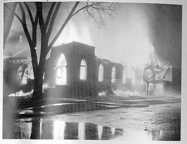 were temporarily held at the Jefferson School auditorium until a new building could be erected. The property was sold and a new site was purchased at the corner of Buckeye and East Street.